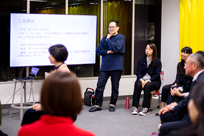アート、ビジネス、テクノロジーなど、異なる分野の実践者たちが交差し、未来の社会像を語り合う多彩なトークセッションを開催。登壇者と参加者の距離が近い会場では、議論を“聞く”だけでなく、互いの視点が交わり、新たな問いが生まれる時間が流れます。そこは、知と創造が行き交う実験的な「思考の広場」。